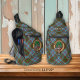 Insignia escudo del clan Anderson rodeada por una correa y hebilla sobre el fondo del tartán. Texto personalizado.
