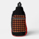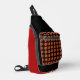 Este bolso de dos tonos, negro y rojo de cuerpo cruzado, con un bolsillo con cremallera, va a donde vas cuando vas en bicicleta y camina y presenta en el frente un bolsillo con cremallera la imagen de una collareta roja Dahia flor impresa en un patrón repetido en un fondo sólido y negro. ¡Un diseño floral y divertido!