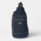 for your everyday adventures. Crafted with a sophisticated navy blue hue and adorned with luxurious gold detailing, this sling bag exudes timeless elegance. Personalize it with your gold initial monogram for a touch of individuality and refinement. Whether you're running errands, exploring the city, or meeting friends for lunch, this sling bag keeps your essentials organized with effortless sophistication. Compact yet practical, this sling bag offers convenience without compromising on style. Wear it across your body or over your shoulder for a chic and modern look. Elevate your ensemble with our Custom Clean Navy Blue Gold Initial Monogram Sling Bag and make a statement of refined style wherever you go.