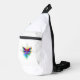 Luminosa, arco iris, libélula poligonal sobre fondo blanco, pintada con acuarela.