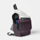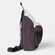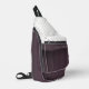 Este bolso de honda presenta una polvorienta banda de ciruela con un nombre blanco personalizado que separa los tawny puntos de polka por encima de la suciedad polvorienta sobre las rayas de ciruela por debajo.