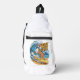 El perro Great Dane sube sin esfuerzo a bordo de un surfboard en una ola masiva en un paraíso tropical de islas.