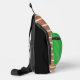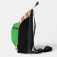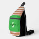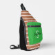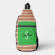 Este diseño de bolsos de honda inspirado en la naturaleza africana y los animales, con canciones terrenas monograma inicial y nombre personalizado de caligrafía en el bolsillo verde delantero, caramelo y rayas blancas como fondo negro de espalda.
