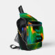 Una imagen fractal azul, verde y naranja con estrellas en el fondo, una representación del fenómeno físico llamado enredo cuántico. Personalizar agregando su propio texto.