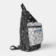 Una moda y un patrón floral femenino con una estética de mano. Este clásico patrón blanco y negro tiene un aire moderno suavizado con el dibujo de líneas texturizadas. El estilo de las bolsitas de honda es un práctico accesorio de viaje. Personalizar esta bonita bolsa con el nombre del propietario en azul claro para un detalle extra personal.