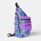 Este Sling Bag presenta magníficas flores de hidrangea combinadas en un patrón floral y exuberante. ¡Para todos los amantes de las flores! Colores en turquesa, lavanda, azul. ¡Texto y color personalizado!