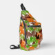Naranja de goma roja verde azulado azúcar Monograma Bolsa de honda Mochila. Personaliza con tu personalizado inicial y nombre. La deliciosa foto de PLdesign de coloridos dulces naranjas, verdes y rojos oscuros sobre blanco.