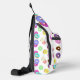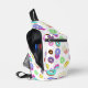 Guay y divertida bolsa de patrones de donuts coloridos. Patrón hecho de ilustraciones de muchos deliciosos donuts de pastelería con todo tipo de vidrios de colores, chocolate, vainilla y todos los colores, azul, amarillo, rosa, púrpura, cian...