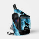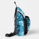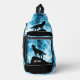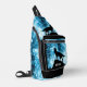 Holling Wolf Winter nevado azul negro Nombre personalizado Sling Bag. accesorio de moda de Guay para hombres. Resumen de humo geométrico de invierno nevado azul y blanco con silueta de lobo negro.