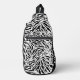 En la parte delantera de este bolso de honda se imprime un patrón de cebra en blanco y negro de moda con tu nombre en el lateral. Crea por ti mismo o dámela como regalo.