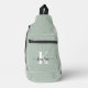 Esta sencilla y elegante mochila de sage green sling con tu primer nombre en un tipo de letra de guión de moda en negro y tu primera inicial en un tipo de letra de tapa moderna en blanco es perfecta para ti. Es de diseño y a la vez muy clásico. Será fabuloso para excursiones, caminatas, compras, ciclismo, etc.