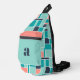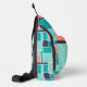 Bolsa Monograma Mint Green Coral Geométrica Art Sling Bag. Un diseño geométrico audaz y fresco con cuadrados y rectángulos en diferentes tonos de menta y verde verde azulado, rosa coral y azul oscuro. Personalice el bolso de cuerpo cruzado con su monograma y hágalo único suyo. Haga una declaración elegante con este bolso durante su próximo viaje a la ciudad o durante el ciclismo por su ciudad natal.
