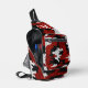 New Mexico, red silver camo, wolf design, printed backpack, bold camo pattern,