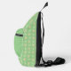 Bolso de cuerpo cruzado adorable con un lindo patrón de muchas ranas verdes y hojas verdes sobre un fondo verde. En el bolsillo delantero hay una rana verde más grande sobre un fondo verde liso con una plantilla para añadir tu nombre u otro texto a personalizar.