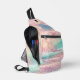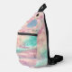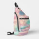 Bolsa de hondas de estilo Sling Bag, Purpurina de gradiente pastel Rainbow Bokeh - Bolsa eslúcida de moda, con purpurina mixto turquesa, rosa y malva, y una princesa con un polvoriento vestido purpurina azul. Puede personalizar esta bolsa de honda agregando su nombre.