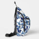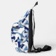 Esta divertida y deportiva bolsa de voleibol presenta un patrón aleatorio de voleibol de tamaño variado azul claro, azul oscuro y blanco, girado de todas formas sobre un fondo blanco - personalizar con el monograma del jugador de voleibol - de katz_d_zynes