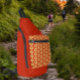Bandolera Patrón floral Dahlia amarillo en rojo