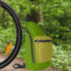 Este bolso de honda verde limón con bolsillo con cremallera va a donde vas cuando vas en bicicleta y haces senderismo y muestra en el frente, el bolsillo con cremallera la imagen de una flor Dahia amarilla impresa en un patrón repetido en un fondo sólido, verde lima. ¡Un diseño floral y divertido!