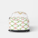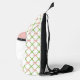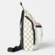 Esta bolsa de bolas de pickleball tiene un diseño de bolsillo delantero con una imagen acuarela de un escudo rodeado de ramas florales con remo de pickleball de gingham verde y rosa en el centro. El diseño de la mochila principal tiene un patrón de enrejado verde con arcos rosados alrededor del borde con el mismo patrón en los lados. Los colores utilizados son el verde musgo, el rosa rubor y el bronceado. Puede personalizar con un nombre.