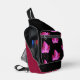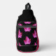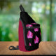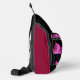 This black and dark red crossbody sling bag with zippered pocket that features a red, autumn Maple leaf pattern on a black background goes where you go when biking and hiking. Side panels are a dark red. Back of sling bag is black. A colorful, botanical design!