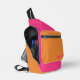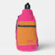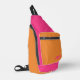 Este bolso de honda de bloque de color es rosa brillante y naranja. Tiene letras que se pueden cambiar al monograma o nombre correcto en el bolsillo. Todo el texto se puede editar o eliminar.