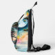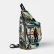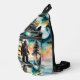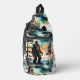 Bandolera Sasquatch sobre un bosque en la orilla del océano