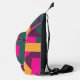 Formas y colores sencillos y audaces de estilo retro en bolsas de cuerpo cruzado.