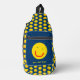 Un sol amarillo de ojos verdes sonriendo en un fondo azul. Personalizar agregando su propio texto. Puede cambiar el color de fondo, así como el tipo de letra y el color del texto.
