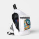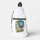 Un pastor alemán chic, bonito y divertido se sube a una tabla de surf sobre una enorme ola en un entorno de isla tropical.
