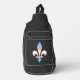 Sling Bag with fleur-de-lis (fleur-de-lys or lily flower) symbol with rainbow stripes of pink, blue and white from transgender flag; trans pride design