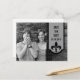 Banner moderno y sencillo Fleur De Lis Guardar la postal de fecha en gris aleado con un cartel de borde de vieiras adornado con un damasco de moda florecido. Esta elegante tarjeta postal es perfecta para anunciar su elegante boda. Fácil de personalizar, simplemente agregue una linda foto de pareja y los detalles de su boda en los campos de texto proporcionados. Haga clic en "Personalizar" para encontrar más opciones de personalización.