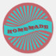Etiqueta gastronómica casera de colores vivos, con un ambiente retro, que incluye una explosión de sol azul y rojo bonito con una pancarta y letras 3D de estilo retro. #canning #masonjars