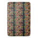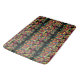Estera de rayas negras y burdeos con una colorida huella de flores.