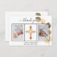 Añade 2 o 3 de tus propias fotos y una nota de agradecimiento. Un elegante fondo blanco con texto negro y marco. Decorada con un eucalipto dorado. El texto: Gracias en la parte delantera y sus nombres en la parte trasera están escritos con un elegante guión con letras a mano con guiones. Neutralidad de género.