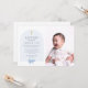 Gracias a la familia y amigos con este bautismo moderno, gracias a la tarjeta que presenta un diseño fotográfico, con un tema moderno del arco azul. Personalice el nombre, el mensaje y la imagen de su bebé. Conservación perfecta después de un bautismo o bautizo.