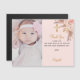 Agrega tu propia foto y una nota de agradecimiento. Un fondo dorado rosa, ondulado y ondulado, con texto negro y marco. Decorada con pampas y flores de color rubia y una cruz dorada. Personalice y agregue una nota de agradecimiento y un nombre.