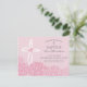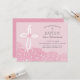 Este bautismo de bonito y niñez, la invitación al bautizo, se puede personalizar para la ocasión religiosa especial de su chica. el texto y los colores de fondo se pueden cambiar a su gusto. Cuenta con una elegante cruz y flores de hortensias rosas. La manera perfecta de invitar a los huéspedes a compartir el importante día.