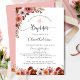 chica de acuarela floral rosa Rubor invitación al bautismo con exquisito arreglo floral en la esquina superior izquierda y campo de flores en la parte inferior de la tarjeta. Flores en magníficos tonos rosas, polvorientos, marfil, melocotón y burdeos. La carta está de vuelta en rosa rubor con detalles florales en el fondo. Invitación con sección para detalles de "Ceremonia" y "Recepción". Productos de coordinación disponibles. Parte de nuestro boda "Heaven in Rosa" y colección de eventos.