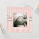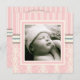 Un bonito diseño de damascos y rayas en un suave y femenino color rosa y crema. Cuenta con una foto de su pequeño ángel en la parte delantera y está adornada con una elegante cruz coordinadora en la parte trasera donde cada área de texto es personalizable. Hace una hermosa invitación a la familia y amigos para la celebración del bautismo o la Navidad de su hija.