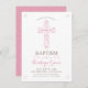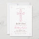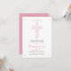 Este moderno bautizo o bautismo de 4.5"x6.25" presenta una elegante cruz floral rosa y blanca dibujada. Ideal para la celebración religiosa de una bebé, se puede personalizar con el nombre de su hijo y los detalles del evento. El color de fondo también puede cambiarse a su gusto.