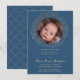 Esta moderna y hermosa invitación al bautismo o a la cristiandad muestra un ilustracion floral dorado con la palabra "bendecido" rodeando una foto. Hay un fondo azul marino en el frente con el texto "bautismo" en una fuente moderna - también en oro. La foto y el texto (palabras y color) se pueden personalizar para la ocasión religiosa especial de tu hijo. El color de fondo de la parte posterior (que se muestra en azul marino) también puede cambiarse a su gusto.