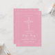 Esta elegante y clásica invitación al bautismo o al bautismo presenta una cruz blanca dibujada con un borde detallado que combina a la par con el resto de la carta. El ejemplo se muestra en color rosa, pero el color de fondo se puede personalizar a su gusto. Perfecto para su ocasión religiosa especial, el texto también puede ser personalizado para su evento.