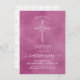 Esta elegante y clásica invitación a bautizar o bautizar petite (4.5" x 6.25") presenta una cruz blanca ilustrada sobre un fondo de color rosa/morado. Perfecto para su ocasión religiosa especial, el texto también puede ser personalizado para su evento.
