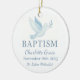 Celebre un día especial de bautismo con este elegante ornamento redondo de cerámica, con una suave paloma acuática sosteniendo una rama de olivo. Este ornamento, un conservador eterno, se puede personalizar con el nombre de su hijo, la fecha de bautismo y el nombre de la iglesia, lo que lo convierte en un recuerdo significativo para los años venideros. Perfecto como un regalo de bautismo reflexivo, aguijón de bautizo, o adorada decoración para honrar este importante hito en la fe.