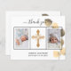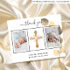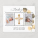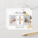 Añade 2 o 3 fotos, tamaño vertical, fecha, nombre y nota de agradecimiento. Un fondo blanco de moda con texto negro y marco, un eucalipto dorado. El texto: Gracias en la parte delantera y tu nombre en la parte trasera está escrito con un elegante guión con letras a mano con barras. Neutralidad de género.