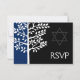 Tarjeta de respuesta Mitzvah RSVP de color azul marino moderno y negro Tree of Life Bar.