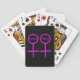 Esta impresionante baraja de cartas está diseñada para lesbianas. Cuenta con dos símbolos femeninos rosados uno al lado del otro. El fondo es negro y hay un texto rosa personalizable dentro de cada uno de los símbolos para poner nombres.