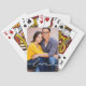 Las tarjetas de juego personalizado modernas y elegantes cuentan con una foto favorita con un diseño minimalista de superposición de tipografía blanca "Love" que incluye detalles floridos y cardíacos. El texto de color blanco se puede personalizar. Una idea de regalo única para una pareja recién casada o para su ser querido en El día de San Valentín!