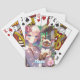 Jugar a las cartas de un niño personalizado. Un chica de anime de ojos azules y bonito sostiene a un gato siamés de ojos azules y bonito rodeado de flores. [43396bacce44]