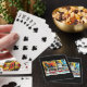 Viajes con cartas de juego de un Bote Swan de Boston con diseño creativo y colorido sobre un fondo negro usando un filtro art deco aplicado. Por celeste@khoncepts.com